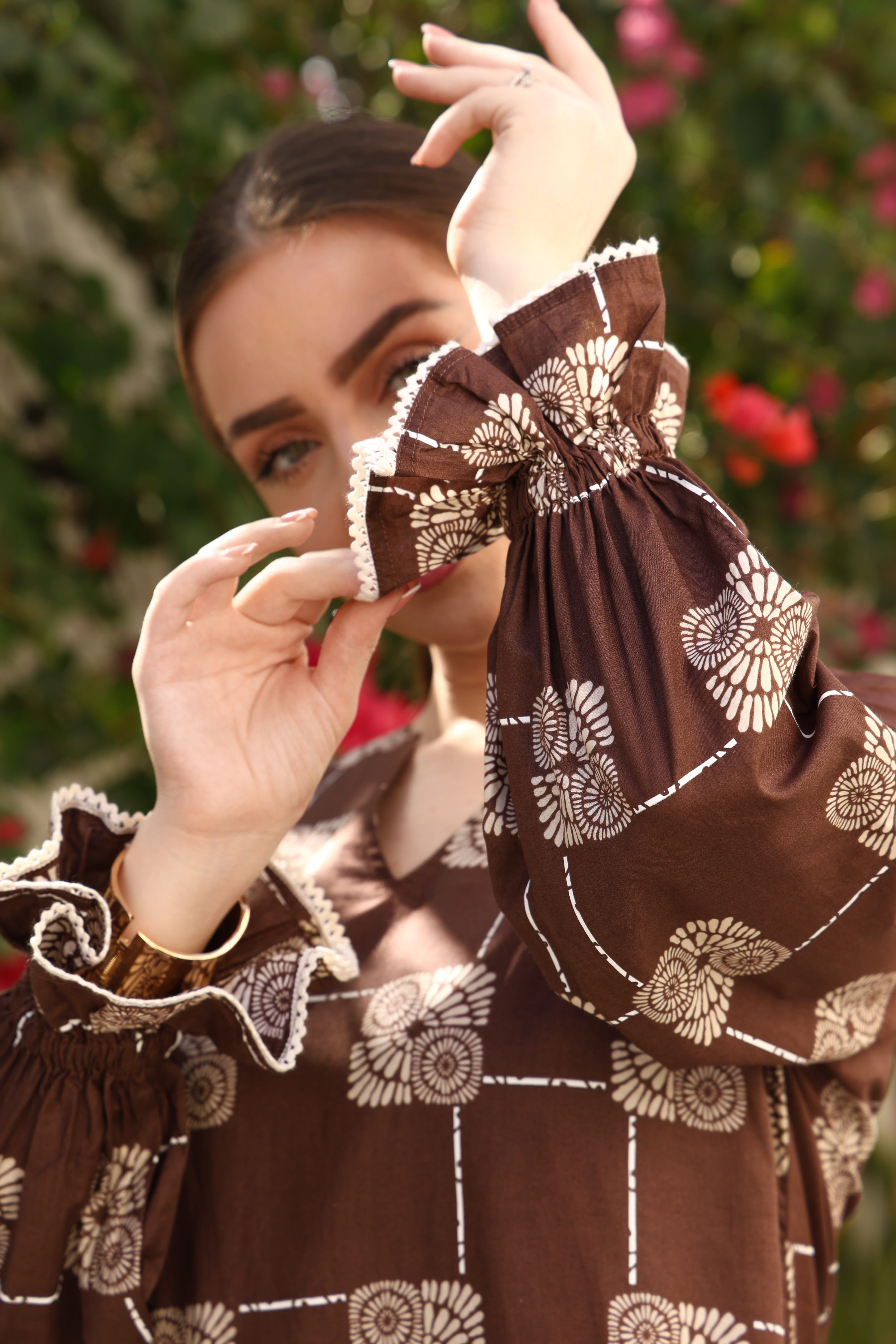 A midi-length printed dress with subtle detailing and a comfortable fit. Easy, breathable, and made for everyday dressing.
